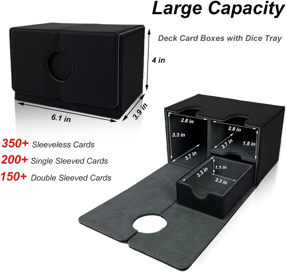 Made of sturdy, durable leatherette and soft microfiber material. Tight stitching and powerful 6 magnets provide the boxes precise and robust closure. Even when fully loaded and turned upside down, the card deck case stays shut tight. protect your valuable cards in mint condition.