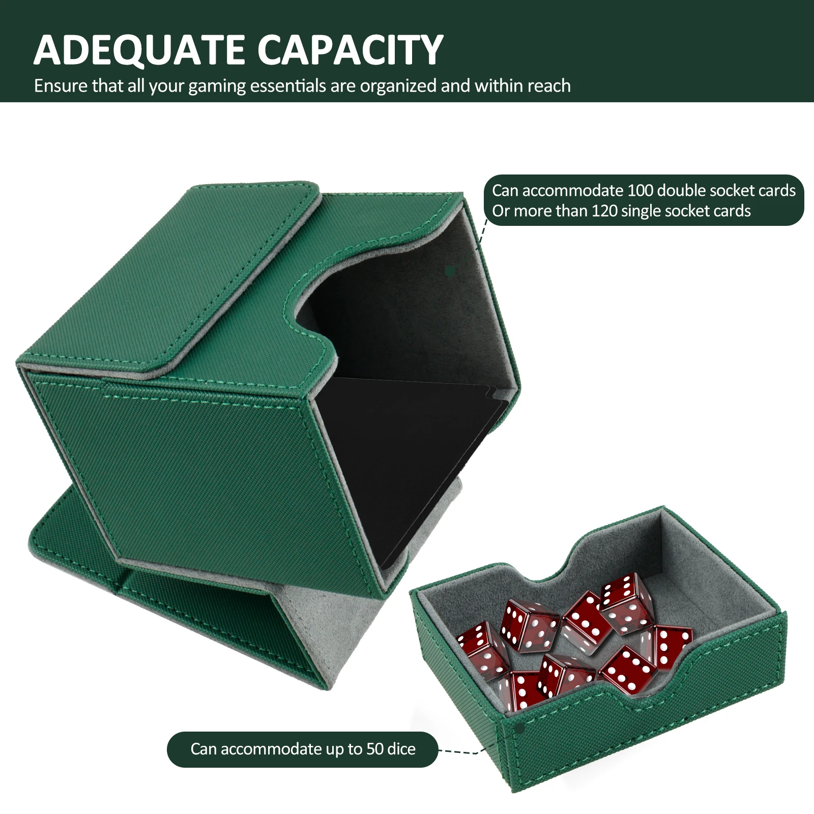 [Exceptional Capacity] Designed to accommodate a wide range of card types, this box includes two individual boxes, holding unsleeved, single-sleeved, or double-sleeved cards (excluding top-loader sleeves). Each individual case comfortably fits up to 80 double-sleeved decks, while the dice tray is thoughtfully included for storing dice, tokens, counters, and other game essentials.