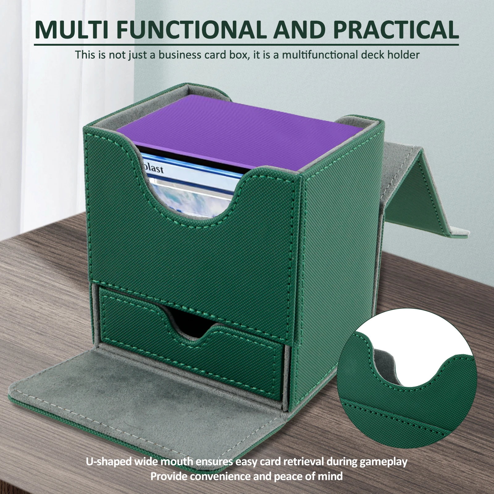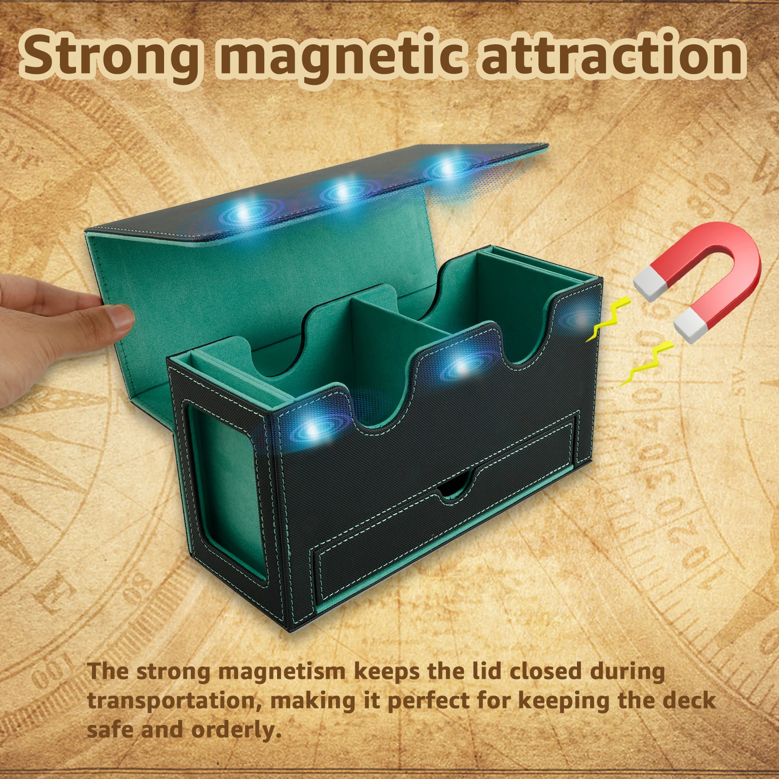 [Magnetic Closure] This card box boasts a powerful magnetic closure system that ensures the lid stays shut tight, effectively safeguarding your precious collection.